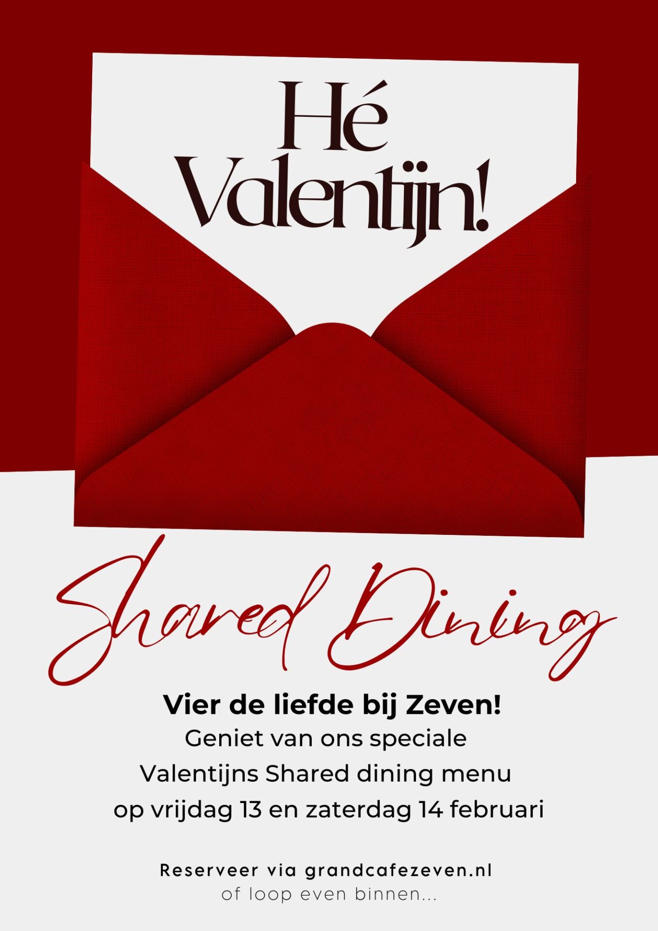 Op vrijdag 13 en zaterdag 14 februari vieren we de liefde bij Grand Café Zeven met een speciaal samengesteld Shared dining menu.